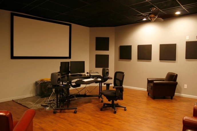 Starting off with the 7 foot screen up front and professional HD DLP Projector, your project is truly shown “on the big screen” in full theatrical HD. Use the theater for screening your project before a test audience, investor or a client demonstration.