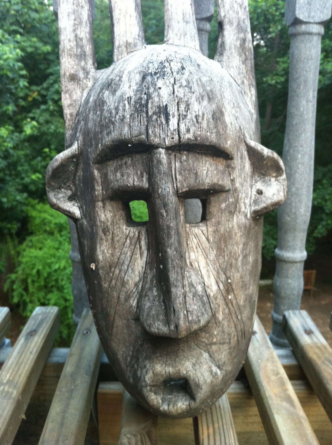 And as you can see, the little slider at the bottom of the first image switches between photos and video. So if you want to shoot a little video, just slide it and shoot away. And I have to say the camera quality is quite good. Better than the original and the speed of the camera is much faster than the 3G model. Pictures snap off pretty much instantly. Here’s a larger version of an image from the camera, a cool little African mask courtesy of one of my producers.