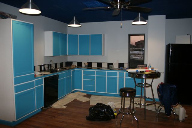 Main kitchen area really coming together nicely now. Dishwasher and sink are in place, we’ve got everything pretty much painted, still need to do some second coats and clean up. Soda fountain table is in the room now.