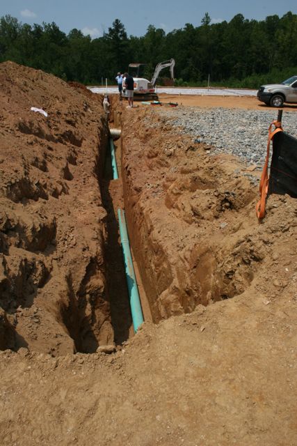 That big mound of dirt is all from digging the trench for the sewer line. They were just finishing laying in the pipe before I left and were preparing to put all that dirt back. When we arrive tomorrow morning that will all be smoothed right back out.
