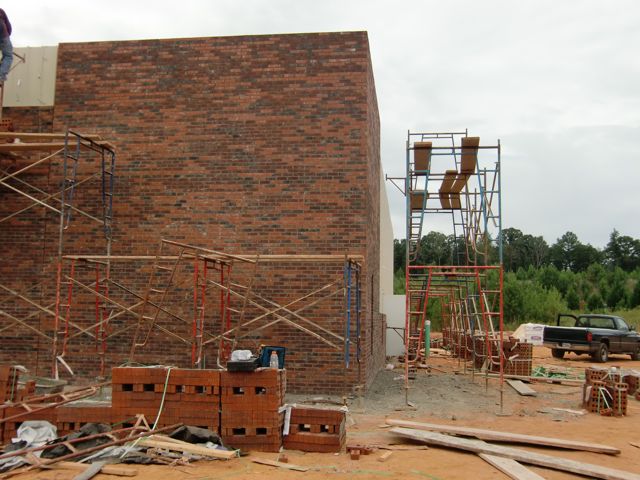 Working down the left side of the building towards the end of the day. Takes a lot of stuff to put up the brick.