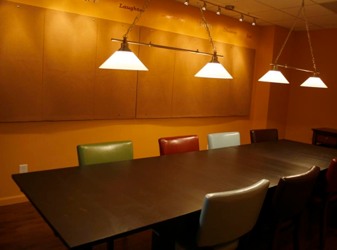 With seating for up to 12, a 50” plasma screen and huge corkboards to post storyboards and show notes, the conference room gives you an inviting space to spread out and meet with your team.