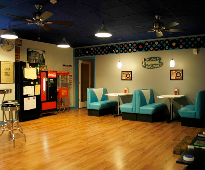 Rebecca’s Lounge comes straight out of a 50’s era diner. Seating for 8 in the 57 Chevy inspired booths or pull up a chair at the soda table. Of course you need to grab a Coke from the classic 1960‘s machine and yes, it does serve the coldest drinks you’ve ever had. Nintendo Wii, Xbox 360 and DirecTV round out the entertainment.