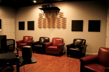 An HD Native ProTools 5.1 Surround System with Genelec monitors provide clear, accurate sound for audio mixing and program playback. The large 7 foot HD projection screen up front along with the oversized chairs give you a true cinematic experience during your session.