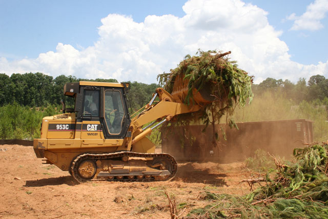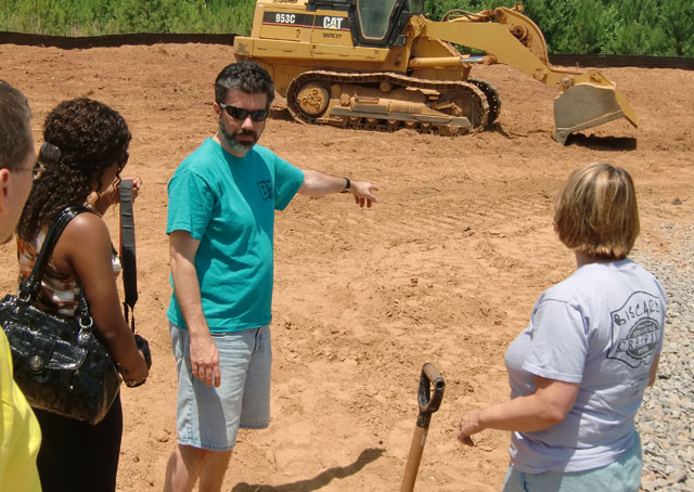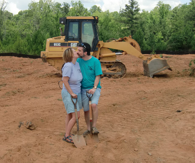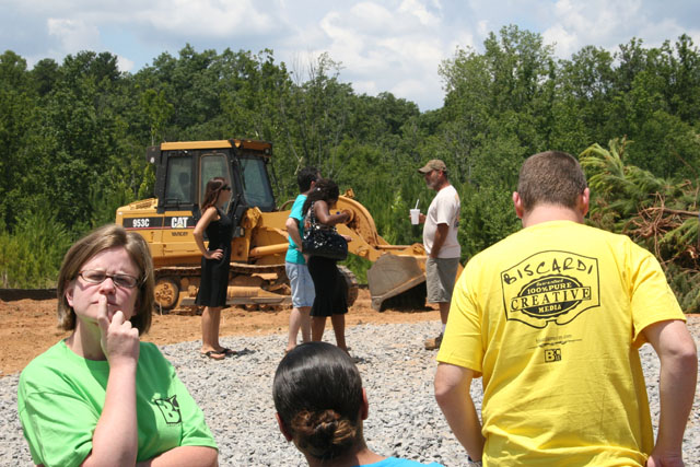 So it was simply a gorgeous day out here in good old Buford, Georgia as we gathered in 95 degree heat (probably 90% humidity) for the traditional “Toss the Shovel” groundbreaking photo. As you can see the construction path was already cut in yesterday and all of us headed on over to the lot during lunch.