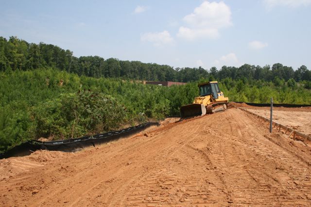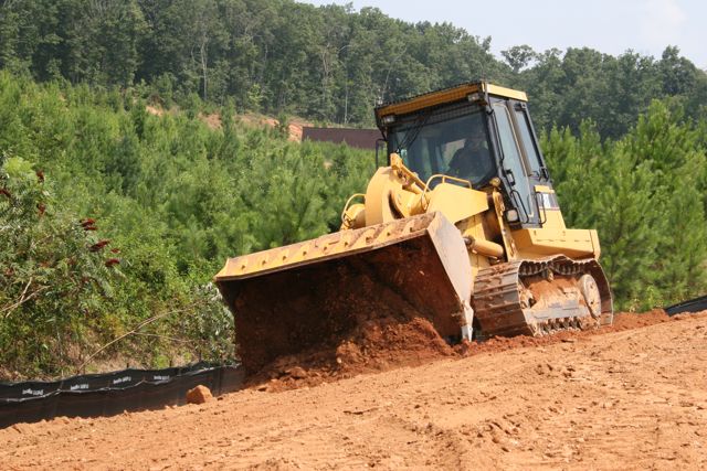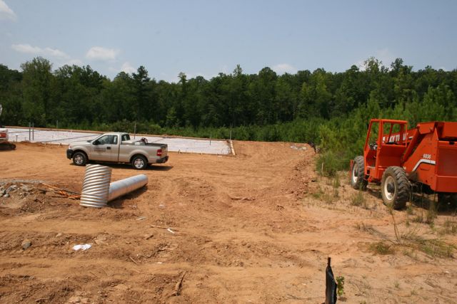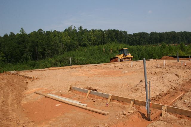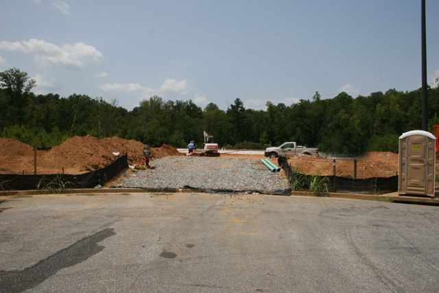 MONDAY: No, that’s not me driving. Man I wish! Well no, just as well, I’d be driving that thing down into the pond behind the property! That’s a very experienced operator from Dinsmore Grading company out of Cumming, GA doing some nice work behind the building.