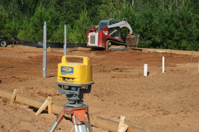 WEDNESDAY: A laser level in the foreground while a team from Metal Building Associates here in Buford smooths out the slab. They use that laser to make sure the slab is as level as humanly possible before they pour the concrete. Anything with a laser is very cool, just ask Buzz Lightyear