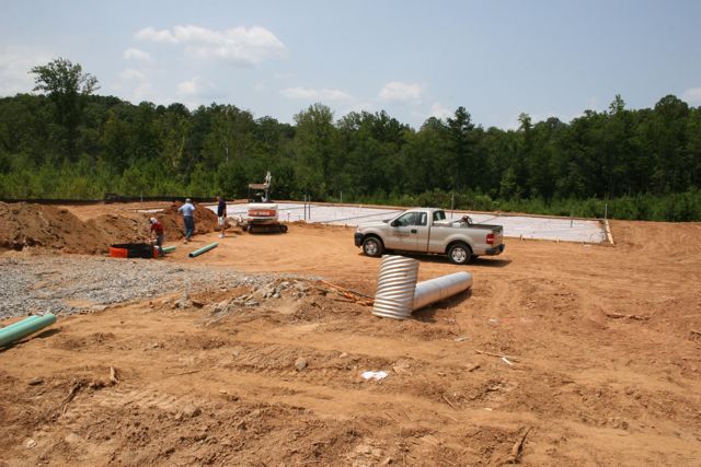 Looking back from the left side of the building, near the conference room. The underground electrical and plumbing are all in the ground.