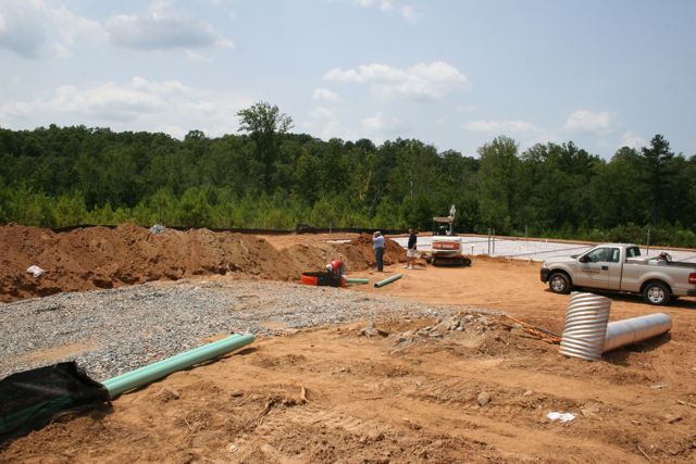 That big mound of dirt is all from digging the trench for the sewer line. They were just finishing laying in the pipe before I left and were preparing to put all that dirt back. When we arrive tomorrow morning that will all be smoothed right back out.