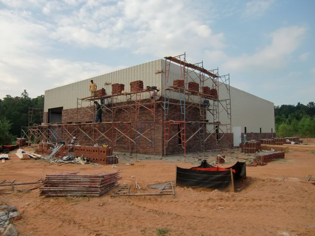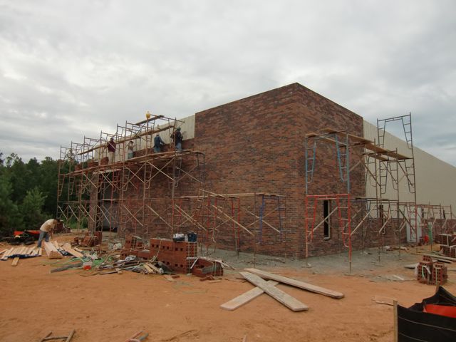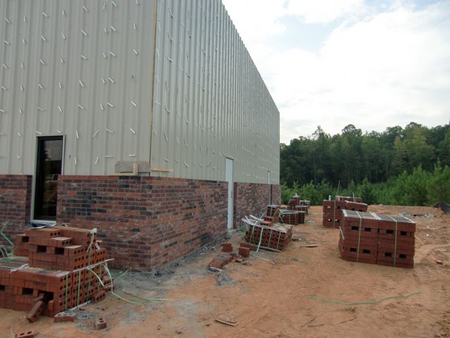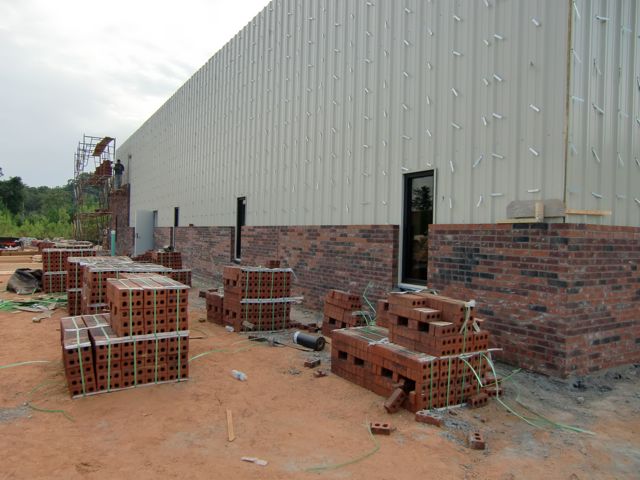 Working down the left side of the building towards the end of the day. Takes a lot of stuff to put up the brick.