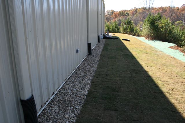 Nice clean river rocks up against the building to make for much easier maintenance.