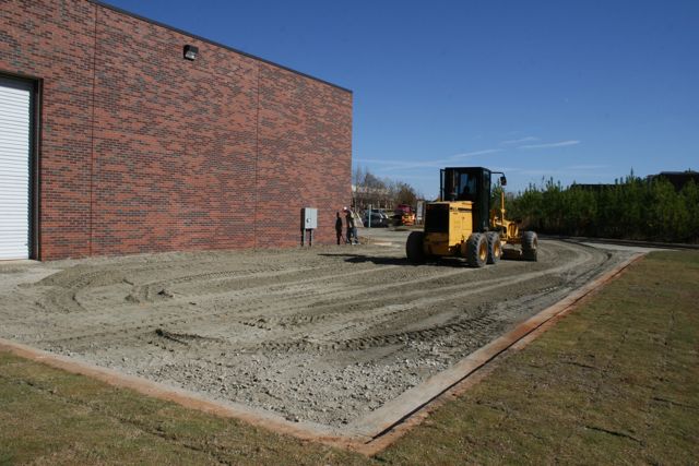 8:30am, prepping the parking lot, smoothing and grading everything properly.