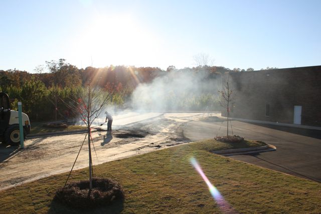 As you know, asphalt is very hot when it goes in. Kind of a cool haze is created though with the backlighting from the sun.