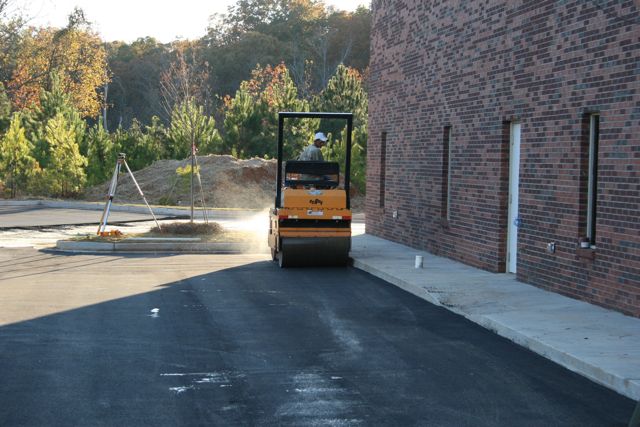Smoothing out and moving the asphalt by hand. They guys were doing one heckuva job out there. Just another in a line of outstanding subcontractors brought in by Joe and Metal Building Associates on this project. Could not be happier with the work of everyone.