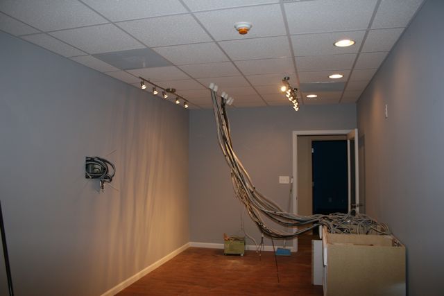 Here you can see the cables dropping down through the ceiling where the racks are going to be.