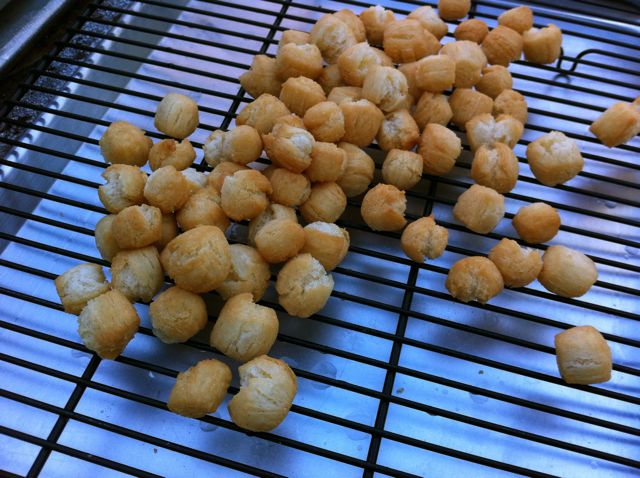1 minute later, turn onto the drying rack, Stuffoli! Well almost, the last step is to dunk all of these into warm honey per the instructions, but I do that the day before we serve.