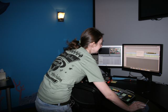 Host Caroline Raville strikes a pose. Bo Emerson takes notes, while Bruce relaxes in the back.