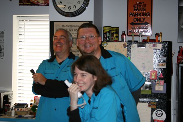 And hey, we got these super cool Bowling Shirts so we can look good while we play! See, Kelly looks like a pro bowler!