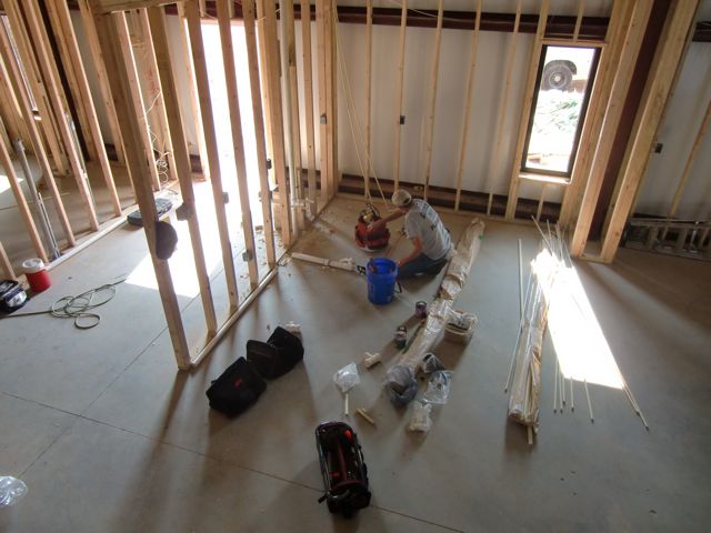 There’s Chuck from Chuck’s Plumbing working on the kitchen sink. You last saw him running the dirt mover before they poured the slab. He and his team are doing an awesome job with everything.