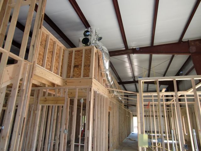 Some of the HVAC running down the halls. I really like how efficiently they are doing the runs. They put two units on either side of the building so the air flows the shortest distance to where it needs to be.
