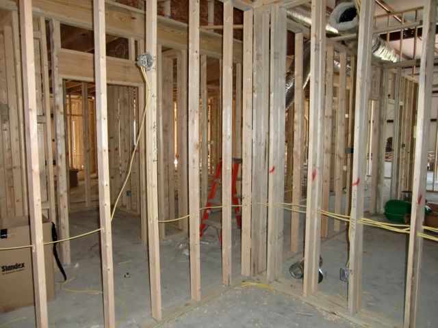 Can’t believe how quickly things move along when you have folks who really know what they’re doing. Last week was a flurry of interior activity with rough plumbing, electrical and HVAC all happening simultaneously. They went so fast, now I’m the holdup for the next step. We need to get all our A/V cable in here so we can pull it through the shop before they cover up the walls….